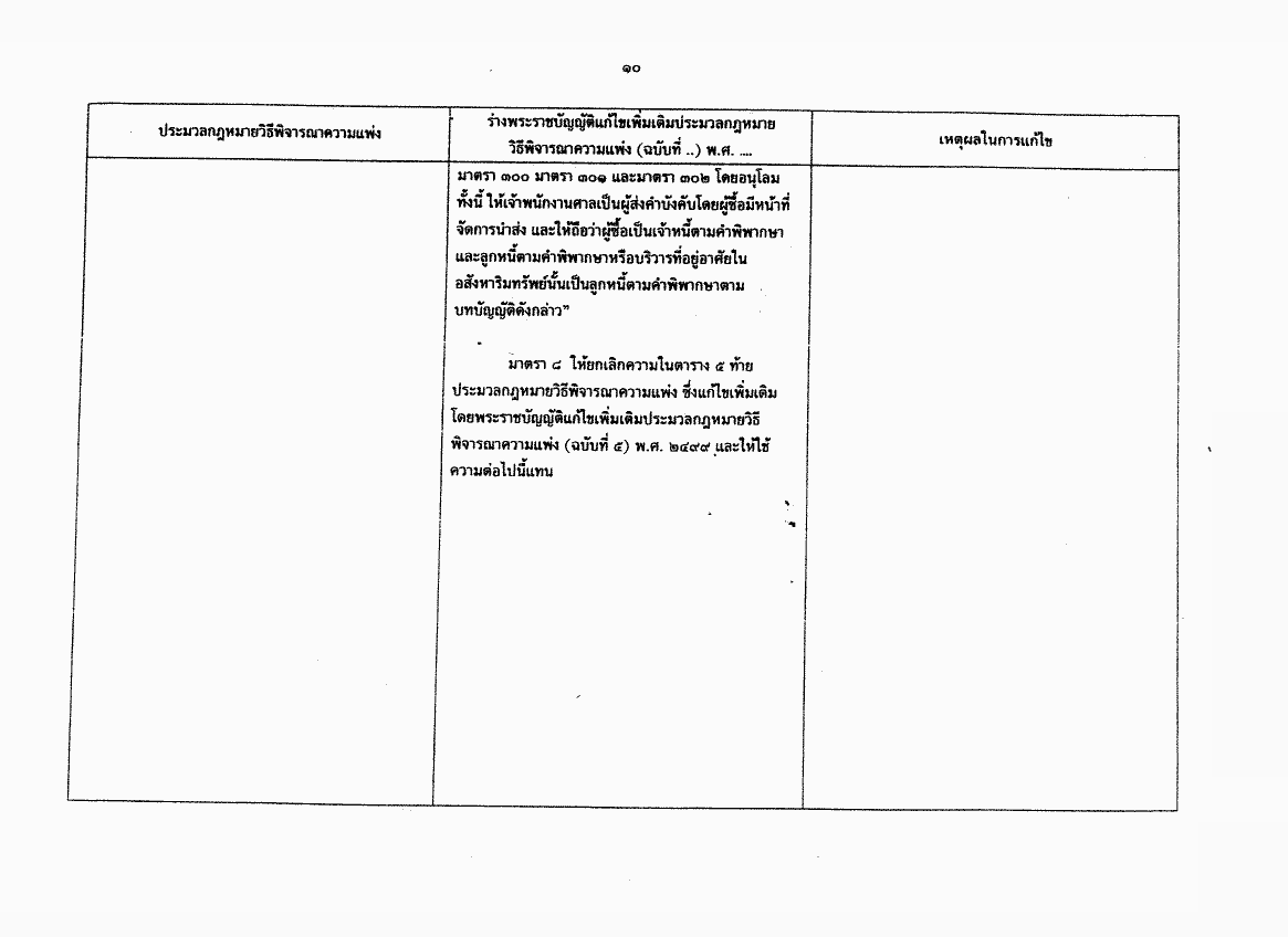 • ร่างพระราชบัญญัติแก้ไขเพิ่มเติมประมวลกฎหมายวิธีพิจารณาความแพ่ง (ฉบับที่ ..) พ.ศ. ....