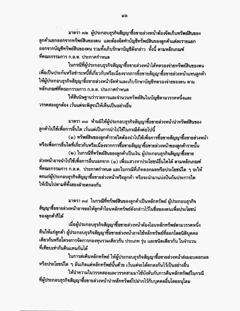 ร่างพระราชบัญญัติสัญญาซื้อขายล่วงหน้า พ.ศ. .... และร่างพระราชบัญญัติหลักทรัพย์ และตลาดหลักทรัพย์ (ฉบับที่..) พ.ศ. .... รวม ๒ ฉบับ