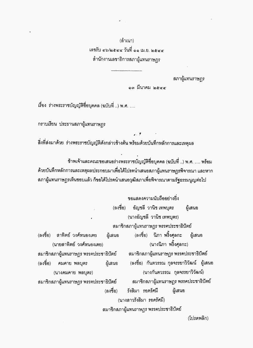 • ร่างพระราชบัญญัติชื่อบุคคล (ฉบับที่ ..) พ.ศ. ....