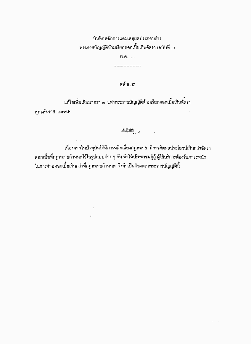 ร่างพระราชบัญญัติห้ามเรียกดอกเบี้ยเกินอัตรา (ฉบับที่ ..) พ.ศ. .... |
