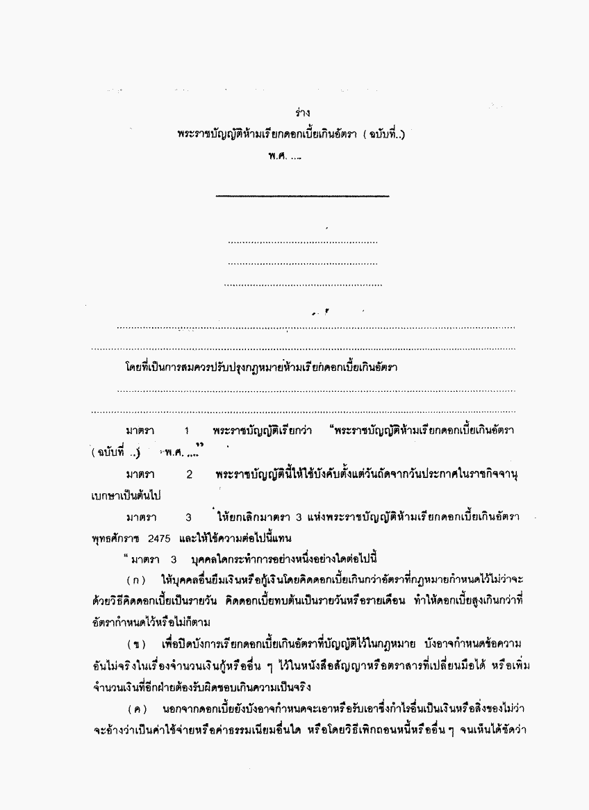 • ร่างพระราชบัญญัติห้ามเรียกดอกเบี้ยเกินอัตรา (ฉบับที่ ..) พ.ศ. ....