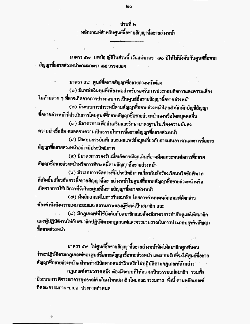 ร่างพระราชบัญญัติสัญญาซื้อขายล่วงหน้า พ.ศ. .... และร่างพระราชบัญญัติหลักทรัพย์ และตลาดหลักทรัพย์ (ฉบับที่..) พ.ศ. .... รวม ๒ ฉบับ