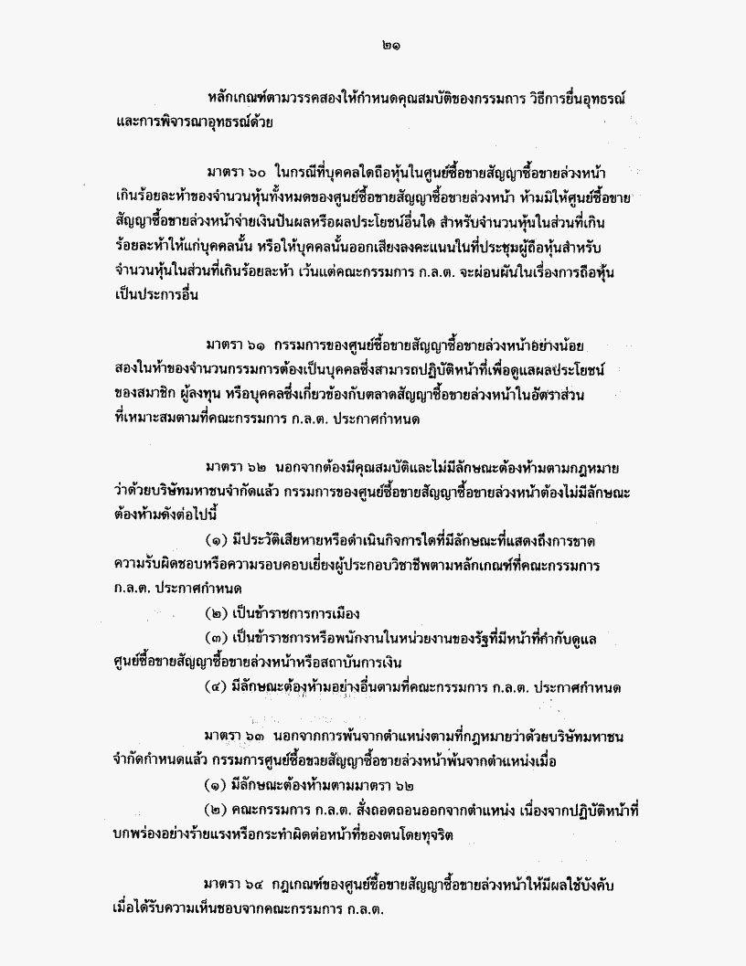 ร่างพระราชบัญญัติสัญญาซื้อขายล่วงหน้า พ.ศ. .... และร่างพระราชบัญญัติหลักทรัพย์ และตลาดหลักทรัพย์ (ฉบับที่..) พ.ศ. .... รวม ๒ ฉบับ