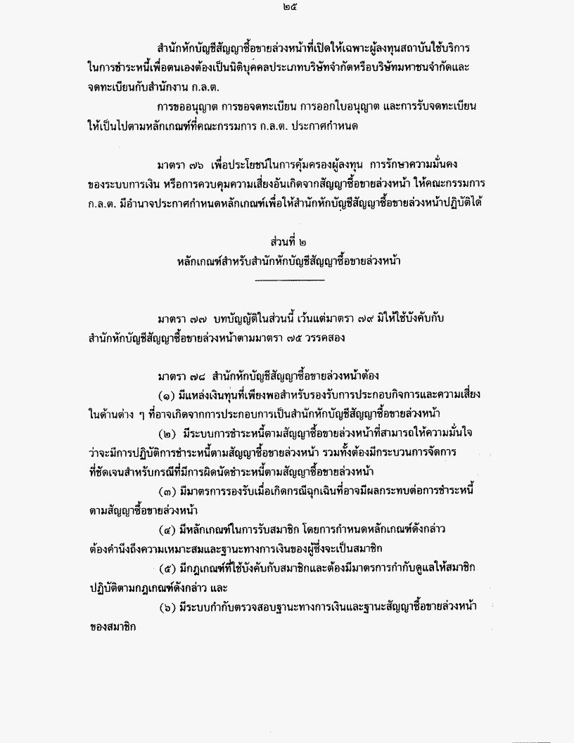 ร่างพระราชบัญญัติสัญญาซื้อขายล่วงหน้า พ.ศ. .... และร่างพระราชบัญญัติหลักทรัพย์ และตลาดหลักทรัพย์ (ฉบับที่..) พ.ศ. .... รวม ๒ ฉบับ