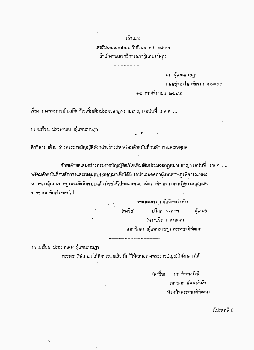 ร่างพระราชบัญญัติแก้ไขเพิ่มเติมประมวลกฎหมายอาญา (ฉบับที่ ..) พ.ศ. .... |