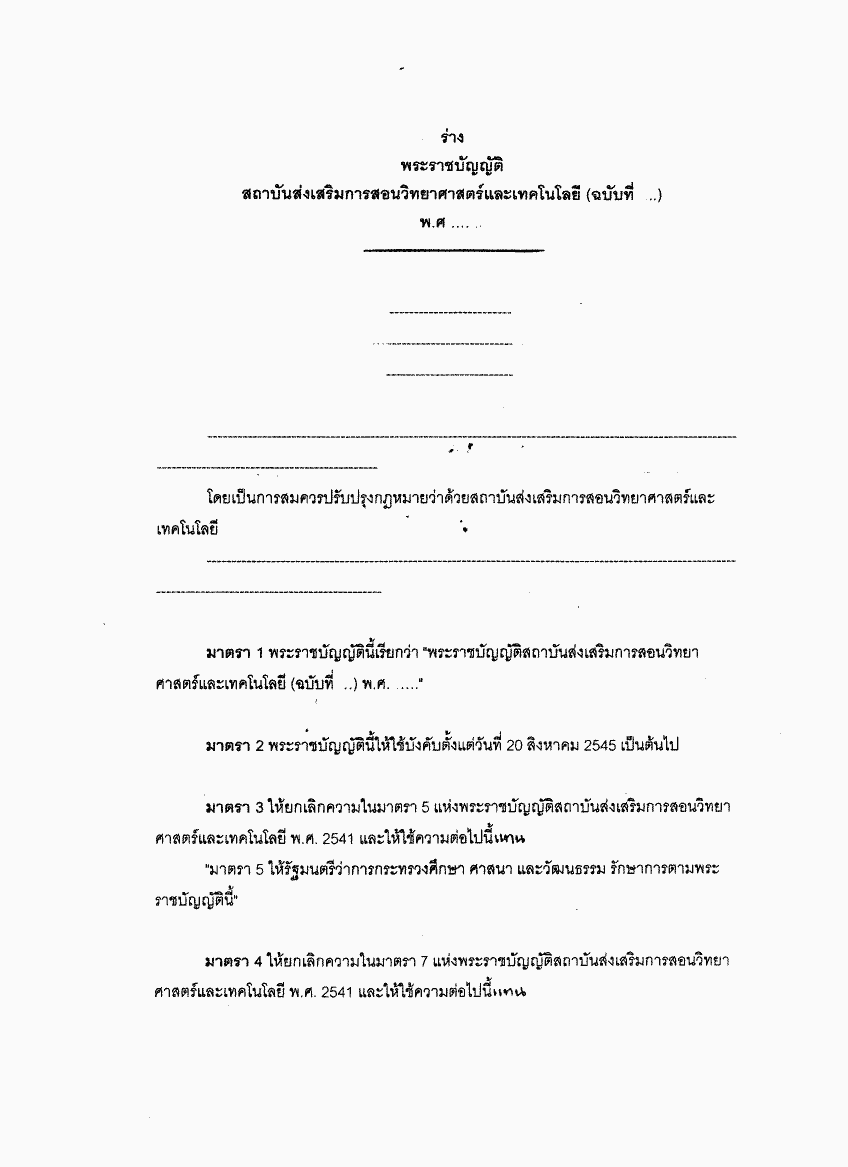 • ร่างพระราชบัญญัติสถาบันส่งเสริมการสอนวิทยาศาสตร์และเทคโนโลยี (ฉบับที่ ..) พ.ศ. ....