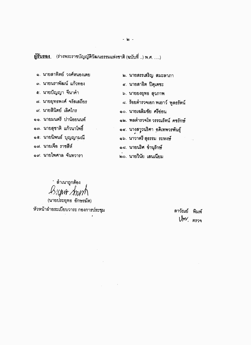 • ร่างพระราชบัญญัติวัฒนธรรมแห่งชาติ (ฉบับที่ ..) พ.ศ. .... (นางพรพิชญ์ พัฒนกุลเลิศ กับคณะ เป็นผู้เสนอ)