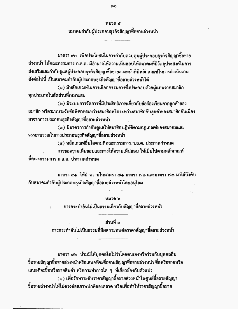 ร่างพระราชบัญญัติสัญญาซื้อขายล่วงหน้า พ.ศ. .... และร่างพระราชบัญญัติหลักทรัพย์ และตลาดหลักทรัพย์ (ฉบับที่..) พ.ศ. .... รวม ๒ ฉบับ
