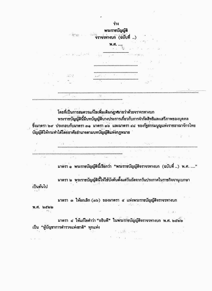 • ร่างพระราชบัญญัติจราจรทางบก (ฉบับที่ ..) พ.ศ. ....