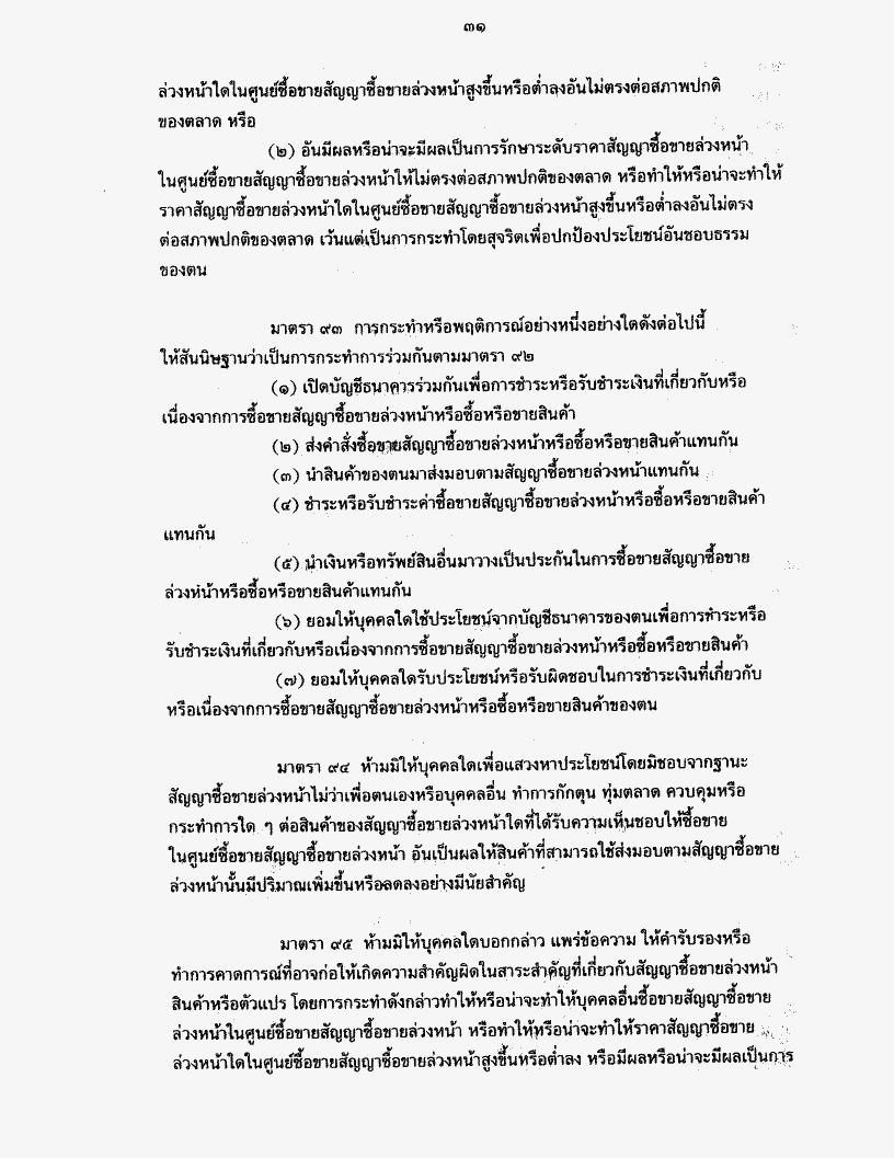 ร่างพระราชบัญญัติสัญญาซื้อขายล่วงหน้า พ.ศ. .... และร่างพระราชบัญญัติหลักทรัพย์ และตลาดหลักทรัพย์ (ฉบับที่..) พ.ศ. .... รวม ๒ ฉบับ