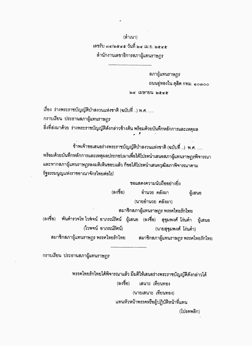 • ร่างพระราชบัญญัติป่าสงวนแห่งชาติ (ฉบับที่ ..) พ.ศ. ....
