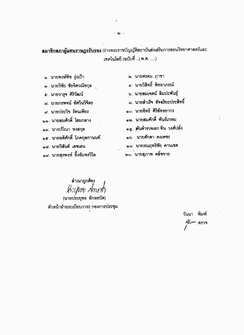 • ร่างพระราชบัญญัติสถาบันส่งเสริมการสอนวิทยาศาสตร์และเทคโนโลยี (ฉบับที่ ..) พ.ศ. ....