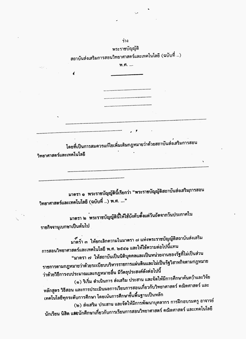 • ร่างพระราชบัญญัติสถาบันส่งเสริมการสอนวิทยาศาสตร์และเทคโนโลยี (ฉบับที่ ..) พ.ศ. ....