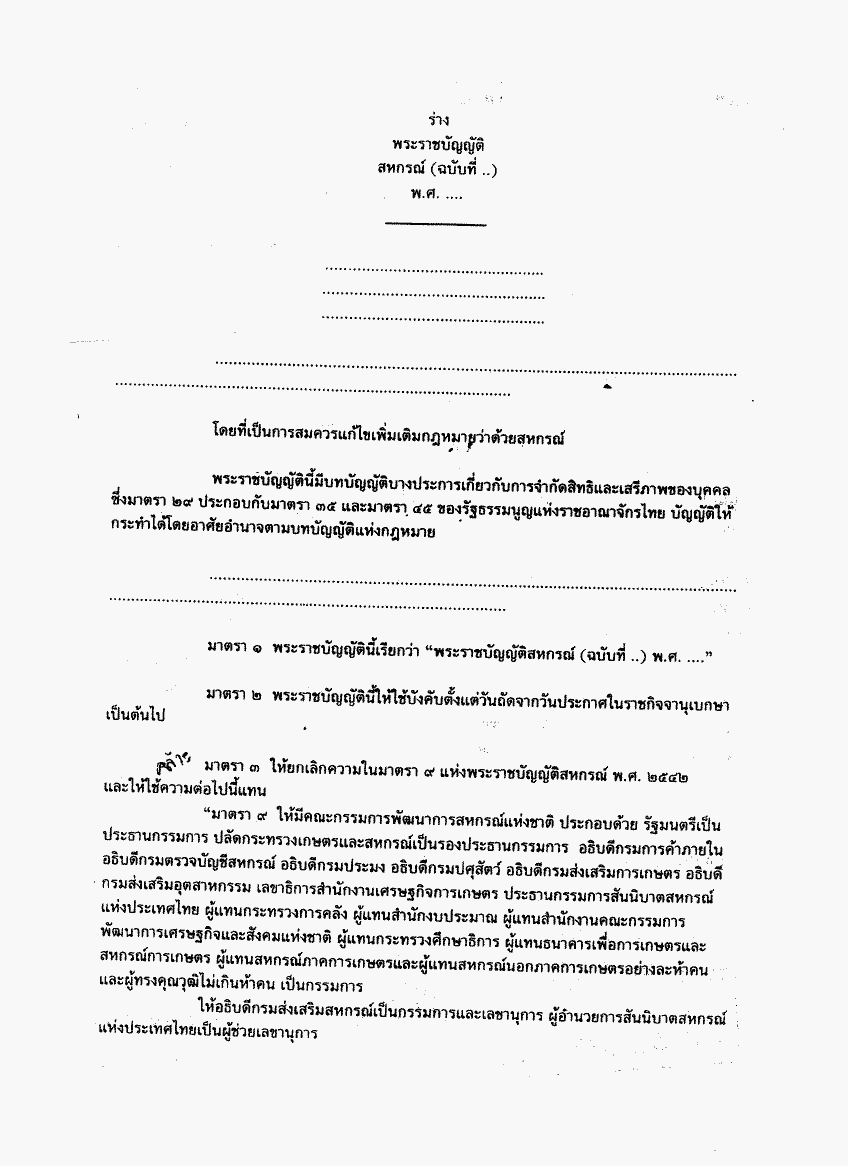 • ร่างพระราชบัญญัติสหกรณ์ (ฉบับที่ ..) พ.ศ. ....