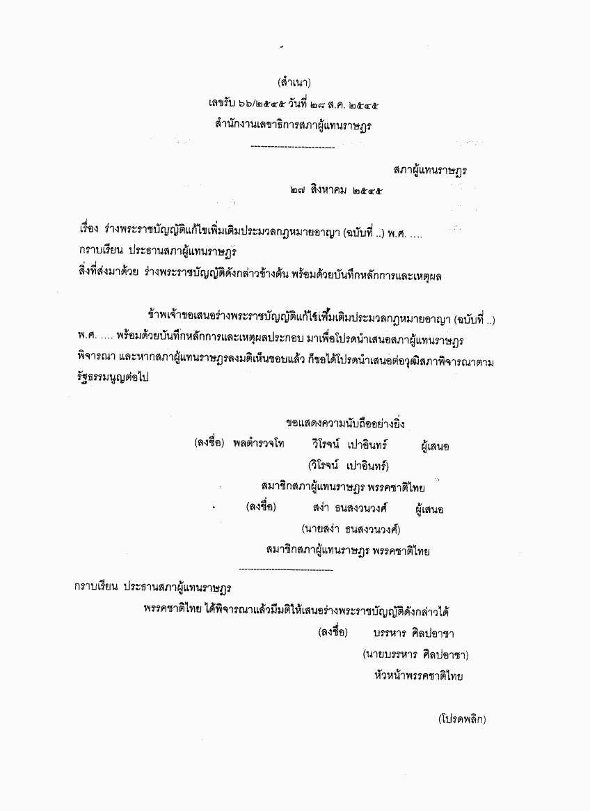 • ร่างพระราชบัญญัติแก้ไขเพิ่มเติมประมวลกฎหมายอาญา (ฉบับที่ ..) พ.ศ .....