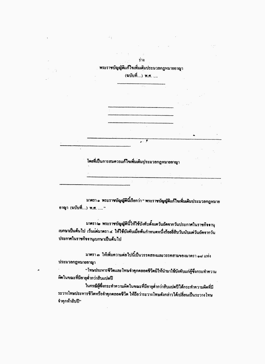 • ร่างพระราชบัญญัติแก้ไขเพิ่มเติมประมวลกฎหมายอาญา (ฉบับที่ ..) พ.ศ .....