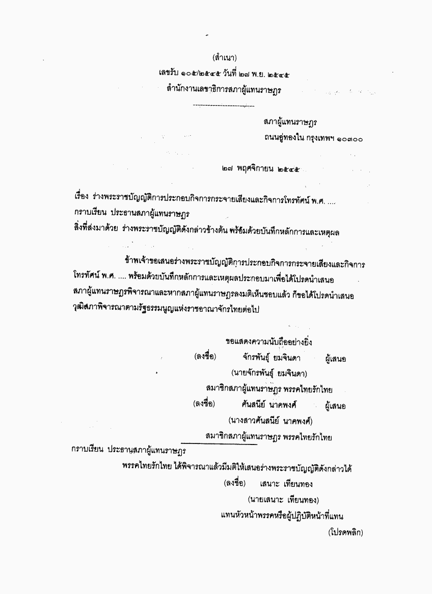 • ร่างพระราชบัญญัติการประกอบกิจการกระจายเสียงและกิจการโทรทัศน์ พ.ศ. ....