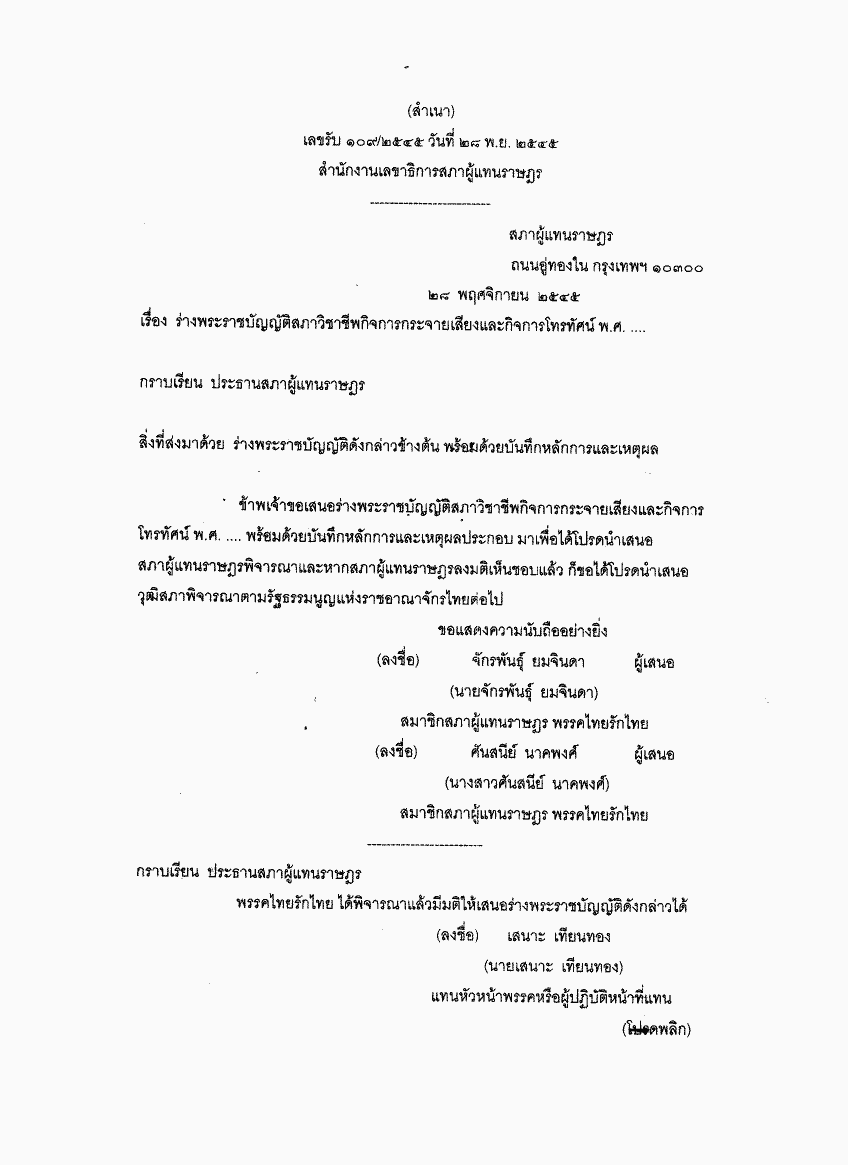 ร่างพระราชบัญญัติสภาวิชาชีพกิจการกระจายเสียงและกิจการโทรทัศน์ พ.ศ. .... (นายจักรพันธุ์ ยมจินดา และนางสาวศันสนีย์ นาคพงศ์ เป็นผู้เสนอ) |