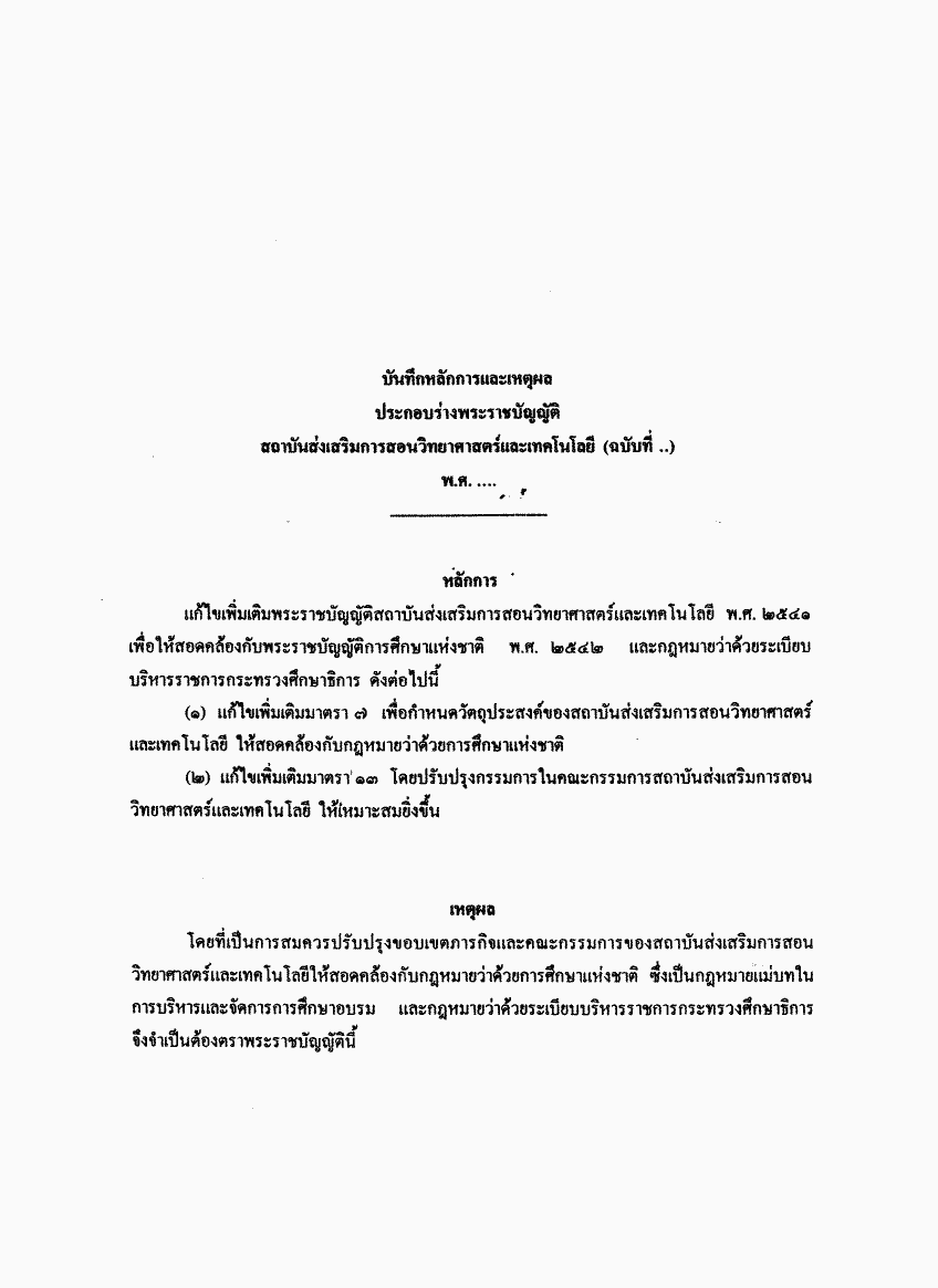 • ร่างพระราชบัญญัติสถาบันส่งเสริมการสอนวิทยาศาสตร์และเทคโนโลยี (ฉบับที่ ..) พ.ศ. ....