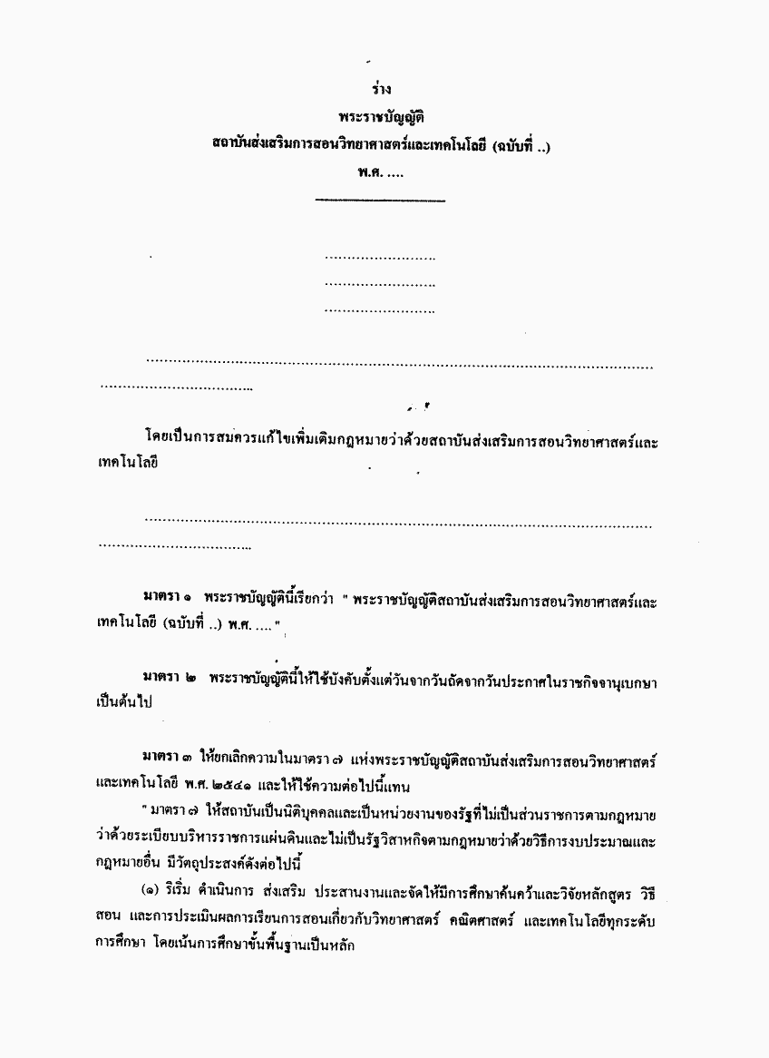 ร่างพระราชบัญญัติสถาบันส่งเสริมการสอนวิทยาศาสตร์และเทคโนโลยี (ฉบับที่ ..) พ.ศ. .... |