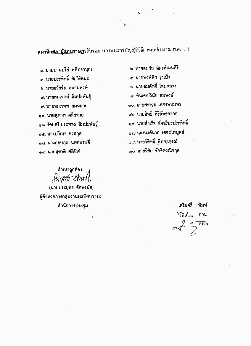 ชื่อเอกสาร :   ร่างพระราชบัญญัติวิธีการงบประมาณ พ.ศ. .... (นายวุฒิชัย สงวนวงศ์ชัย และนายวรรณรัตน์ ชาญนุกูล เป็นผู้เสนอ)