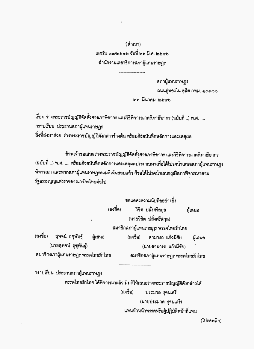 • ร่างพระราชบัญญัติจัดตั้งศาลภาษีอากร และวิธีพิจารณาคดีภาษีอากร (ฉบับที่ ..) พ.ศ. ....