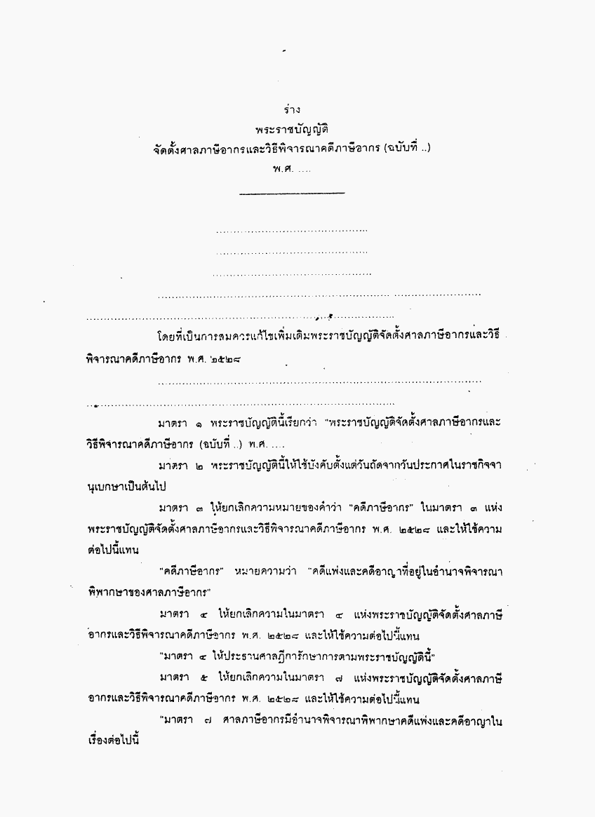 ร่างพระราชบัญญัติจัดตั้งศาลภาษีอากร และวิธีพิจารณาคดีภาษีอากร (ฉบับที่ ..) พ.ศ. .... |