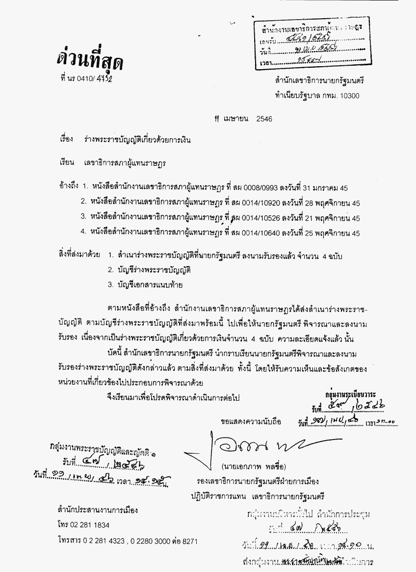 ชื่อเอกสาร : ร่างพระราชบัญญัติเกี่ยวด้วยการเงิน