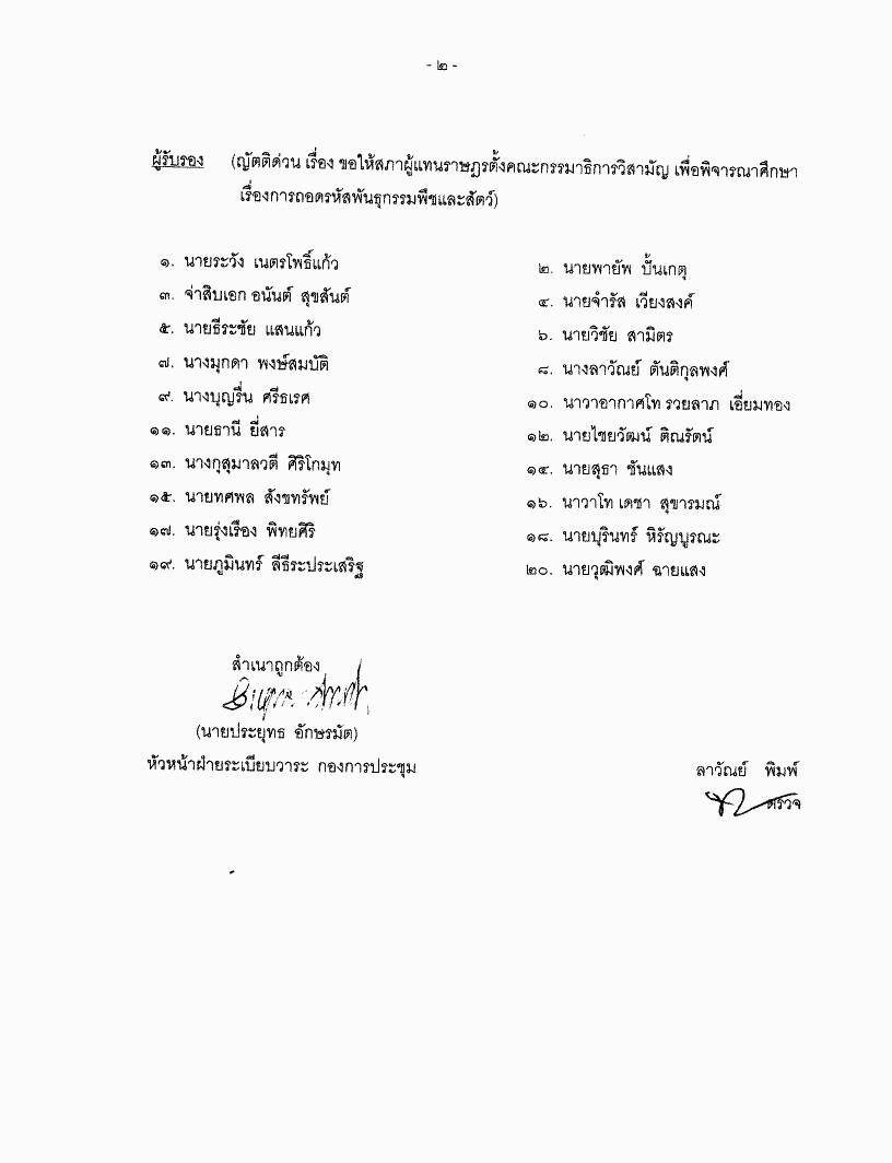 ขอเสนอญัตติด่วน เรื่อง ขอให้สภาผู้แทนราษฎรตั้งคณะกรรมาธิการวิสามัญ เพื่อพิจารณาเรื่องการถอดรหัสพันธุกรรมพืชและสัตว์ |