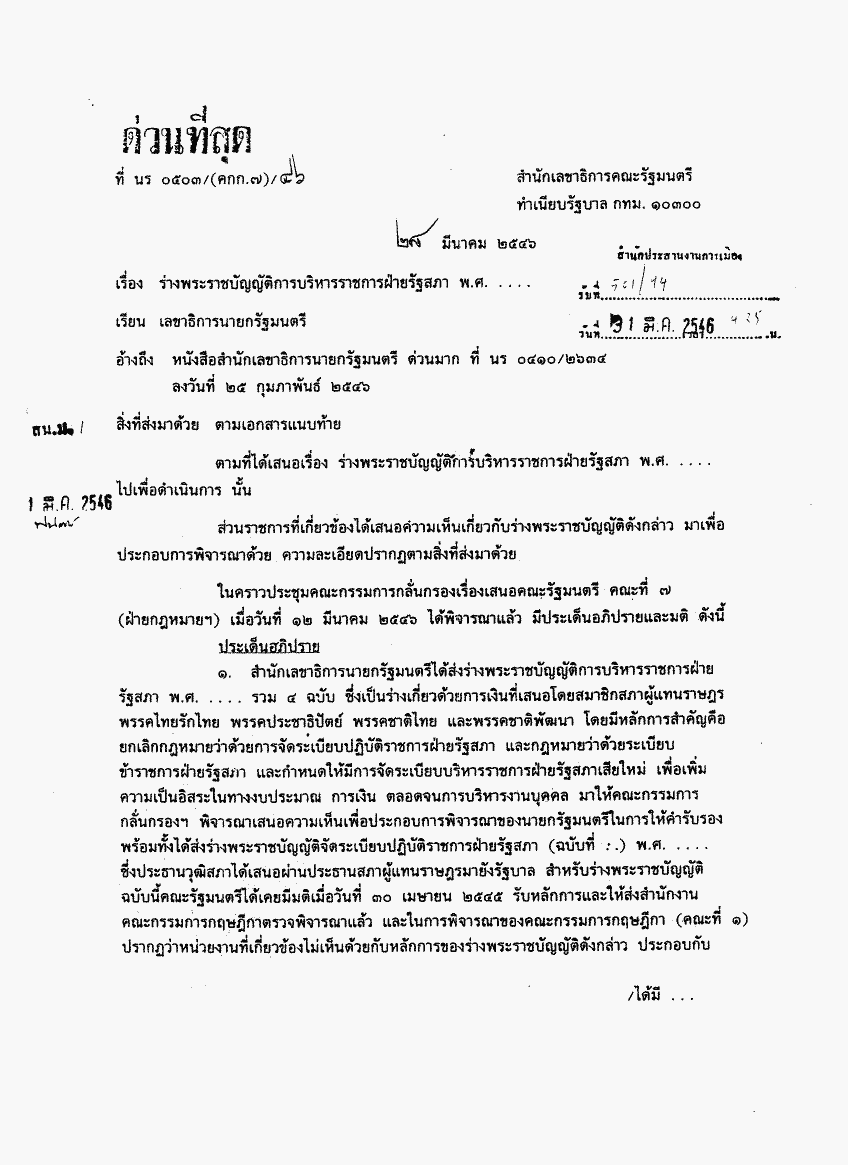 • ร่างพระราชบัญญัติการบริหารราชการฝ่ายรัฐสภา พ.ศ. ....