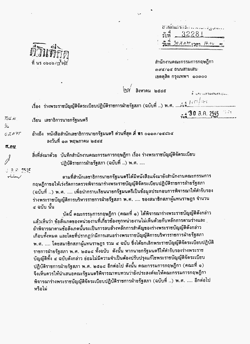 • ร่างพระราชบัญญัติจัดระเบียบปฏิบัติราชการฝ่ายรัฐสภา (ฉบับที่ ..) พ.ศ. ....