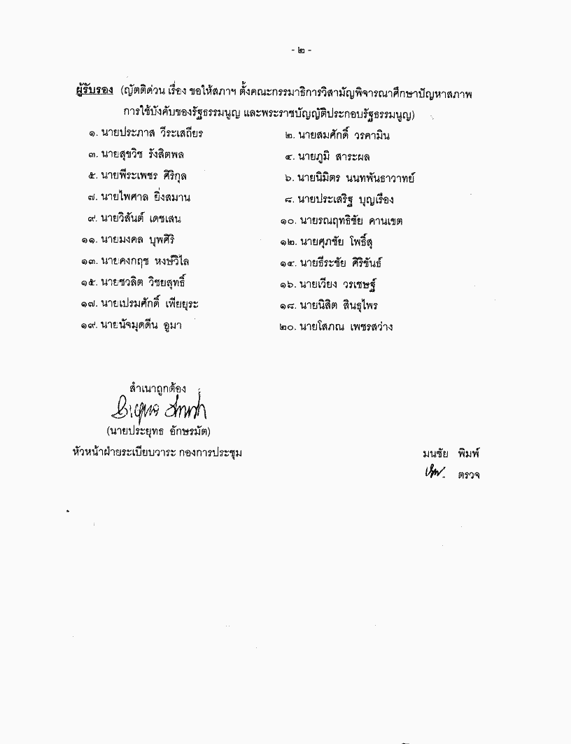 ญัตติด่วน เรื่อง ขอให้สภาฯ ตั้งคณะกรรมาธิการวิสามัญพิจารณาศึกษาปัญหาสภาพการใช้บังคับของรัฐธรรมนูญ และพระราชบัญญัติประกอบรัฐธรรมนูญ |