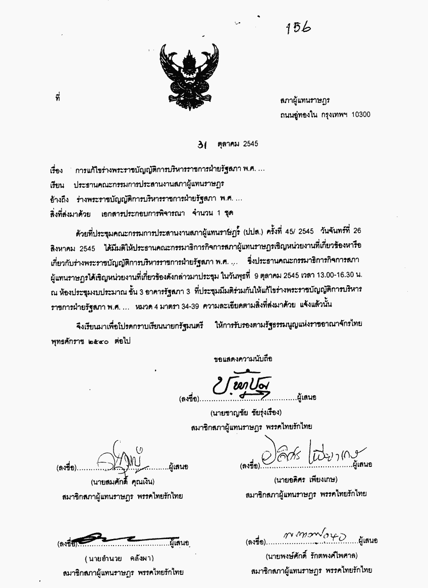 การแก้ไขร่างพระราชบัญญัติการบริหารการฝ่ายรัฐสภา พ.ศ. ...