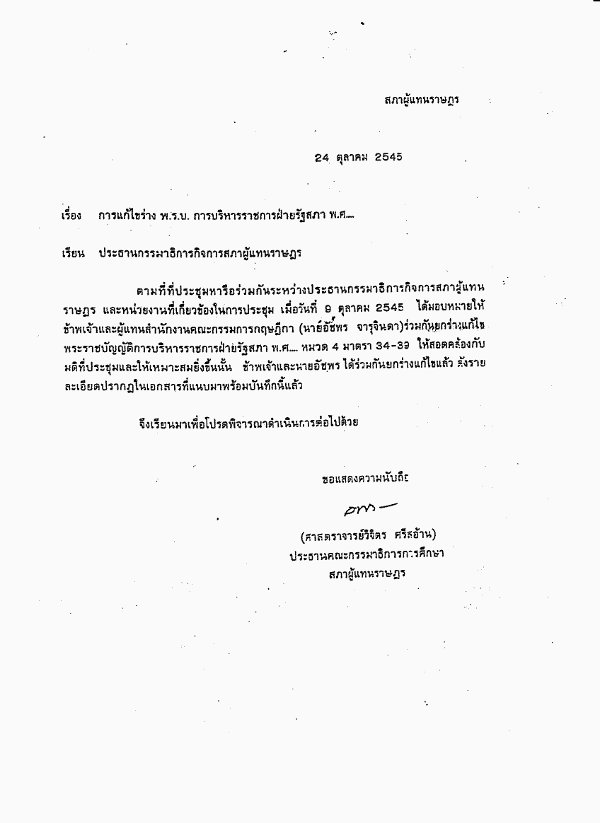 การแก้ไขร่างพระราชบัญญัติการบริหารการฝ่ายรัฐสภา พ.ศ. ...