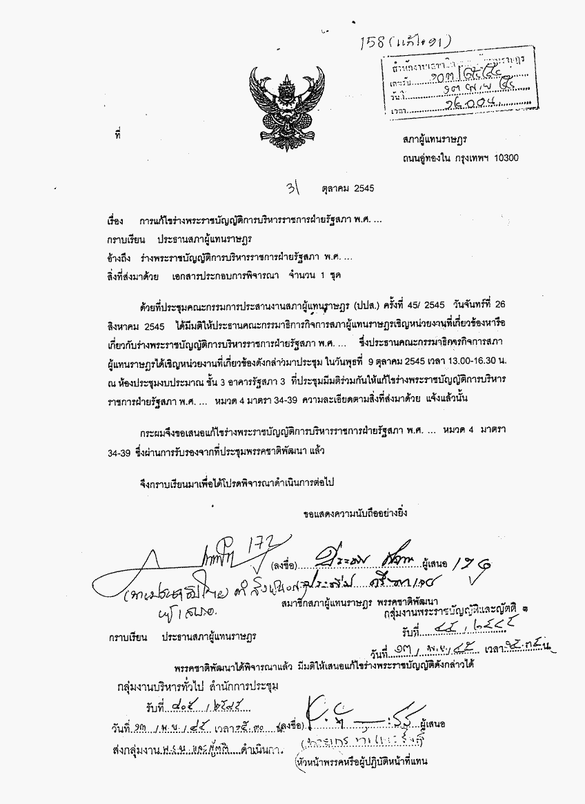 • การแก้ไขเพิ่มเติมร่างพระราชบัญญัติการบริหารราชการฝ่ายรัฐสภา พ.ศ. ....