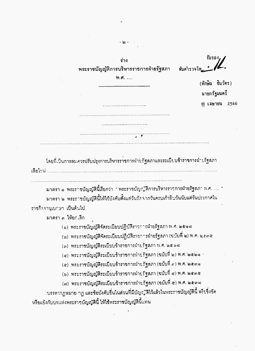 ชื่อเอกสาร :   การแก้ไขเพิ่มเติมร่างพระราชบัญญัติการบริหารราชการฝ่ายรัฐสภา พ.ศ. ....
